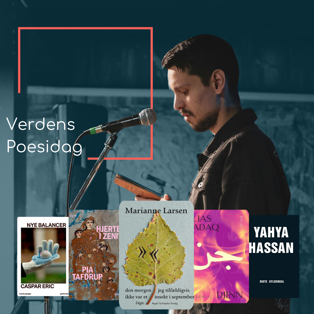 I anledning af Verdens Poesidag opfordrer vi til at læse eller lytte til digte indlæst af forfatteren selv.  Forfatterens egen indlæsning forstærker ofte den tone og stemning, der er i digtene. Tænk blot på Yahya Hassans messende og intense indtaling af sine digte. Har man hørt ham læse op blot en enkelt gang, glemmer man det aldrig igen.